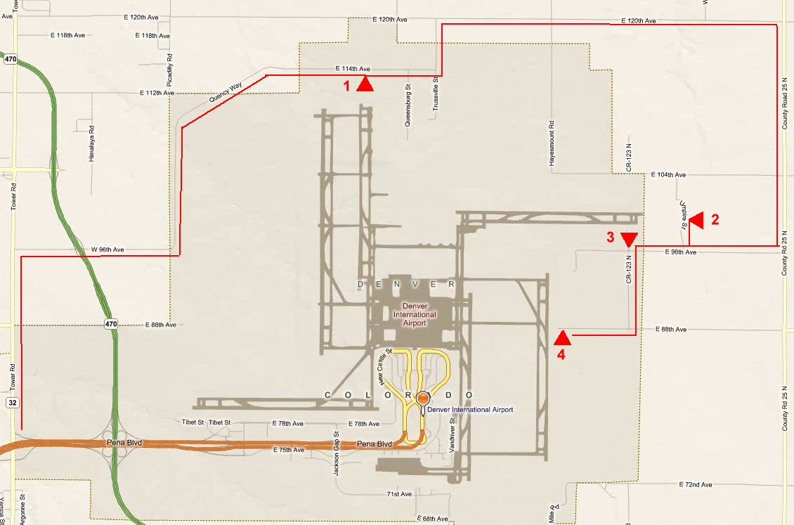 Not as close to end of runway as at old Stapleton.